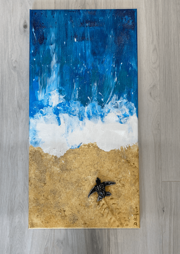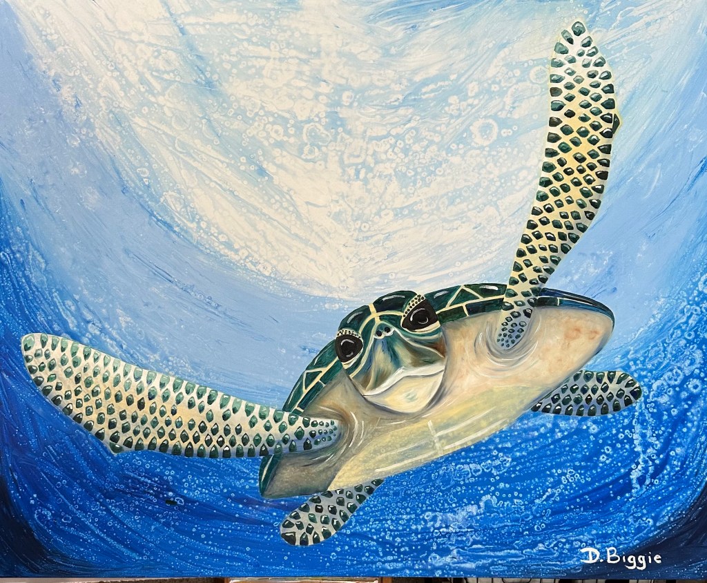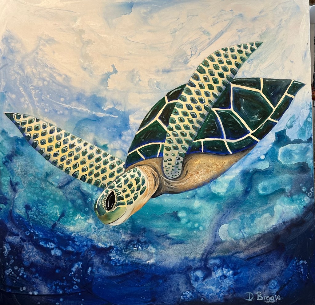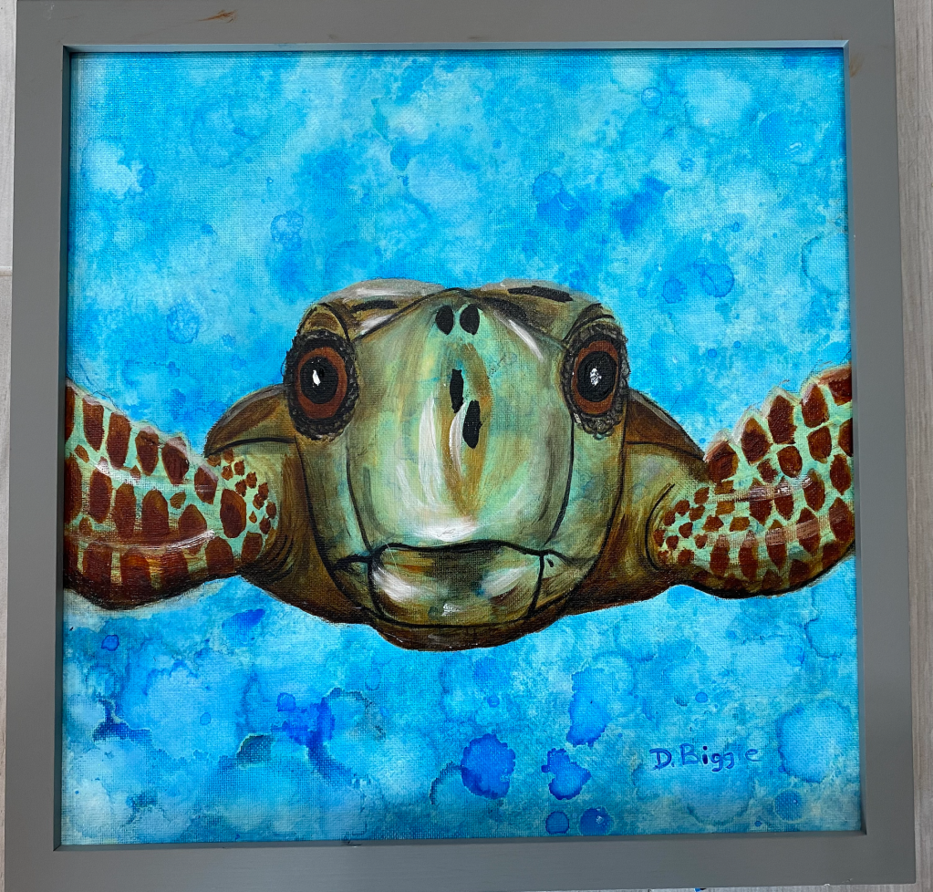 Combining my love of biology and art has created D. Biggie art. I’m a classically trained artist, working in acrylics, oil and alcohol ink as well as clay. And, I’m a formally trained biologist. I’ve taught for almost 20 years but wanted to do more. That’s how D.Biggie was founded. I decided to use my art to help out. Living in Fort Lauderdale we have many species of concern that call this home. One of the ones impacted by humans is the sea turtle. D. Biggie art helps support sea turtle conservation with education and finances. As an adjunct professor at Nova Southeast University, it was a natural partnership to help support the Marine Environmental Education Center (MEEC) at the Carpenter House in Hollywood Beach. A portion of every sale goes to MEEC to help injured sea turtles and protect nests on the beach.